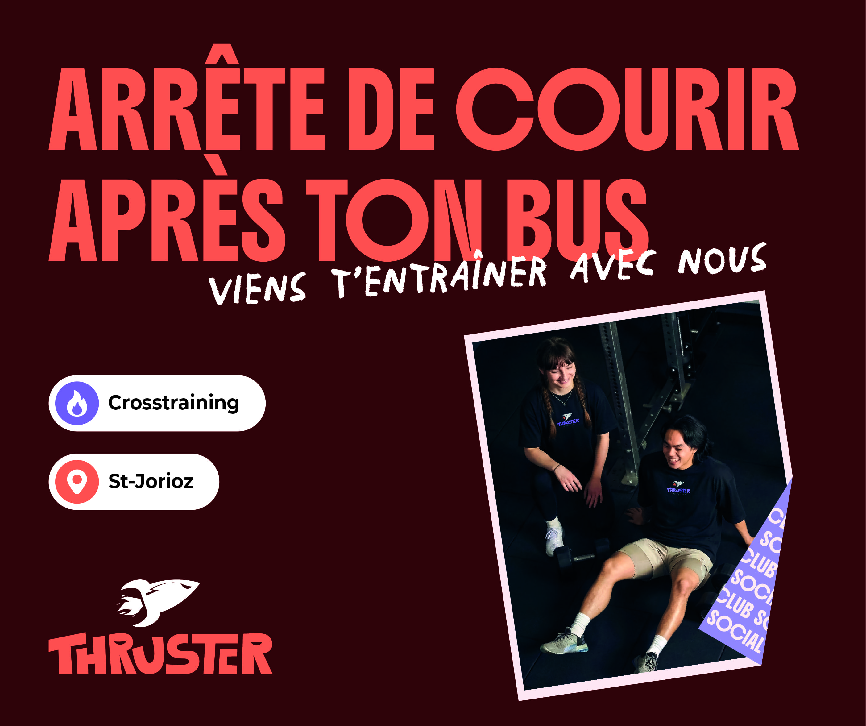 Thruster combine une ambiance conviviale, des coachs passionnés et des entraînements accessibles à tous pour t’aider à progresser, quel que soit ton niveau.